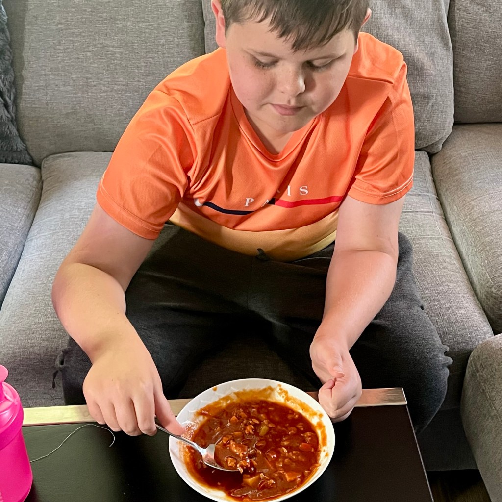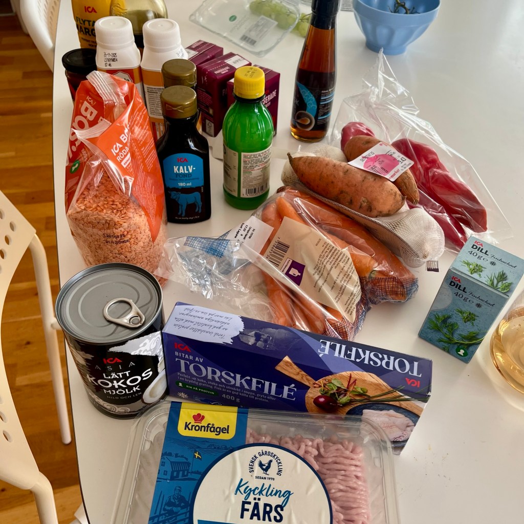 Jag har kokat två soppor – en gulasch med färs och en lins- & sötpotatissoppa. Familjen gav tummen upp till båda, och Viktor ville till och med ha gulasch till middag 👍🏻👍🏻. Jag mixade dem släta och frös in i portioner – ett litet lager av omtanke inför kommande dagar.